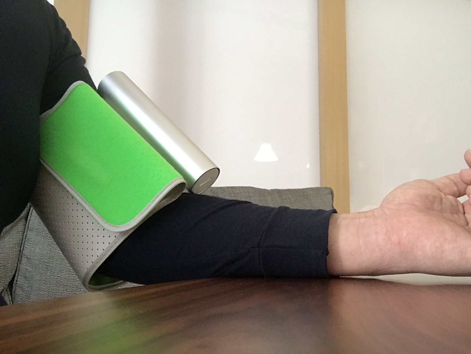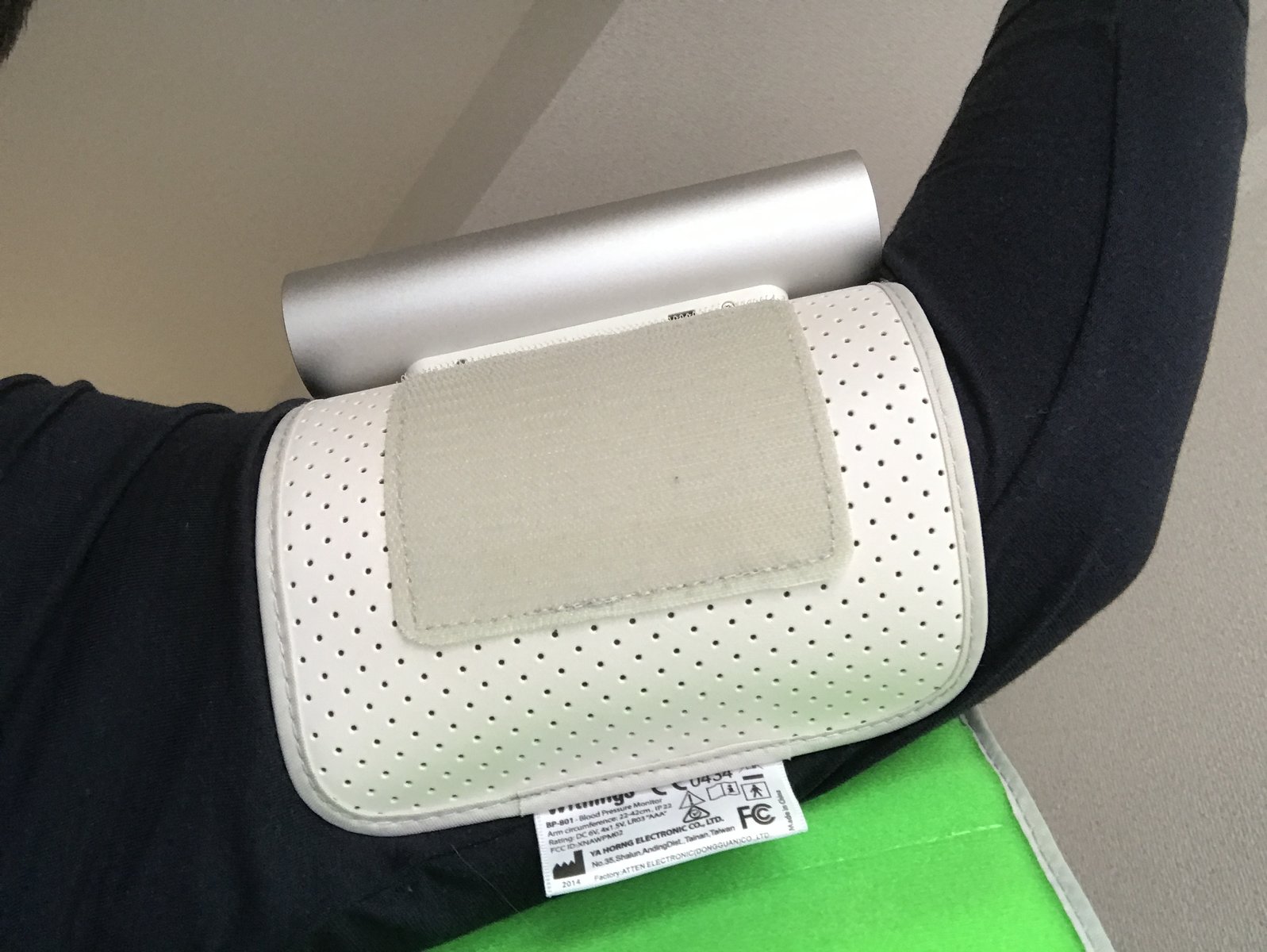 まず、Withings血圧計を上腕に巻いて、