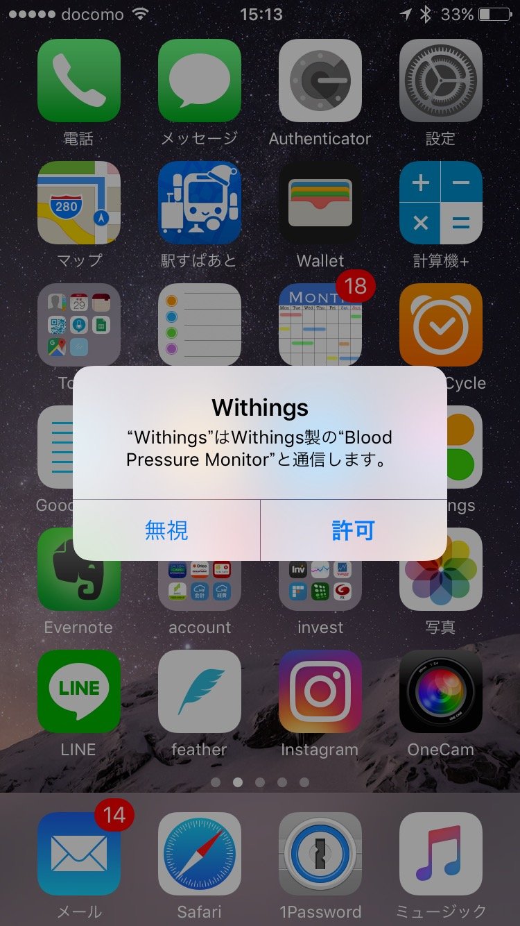 Withings血圧計の電源を入れるだけで「血圧計と通信します」と教えてくれて、