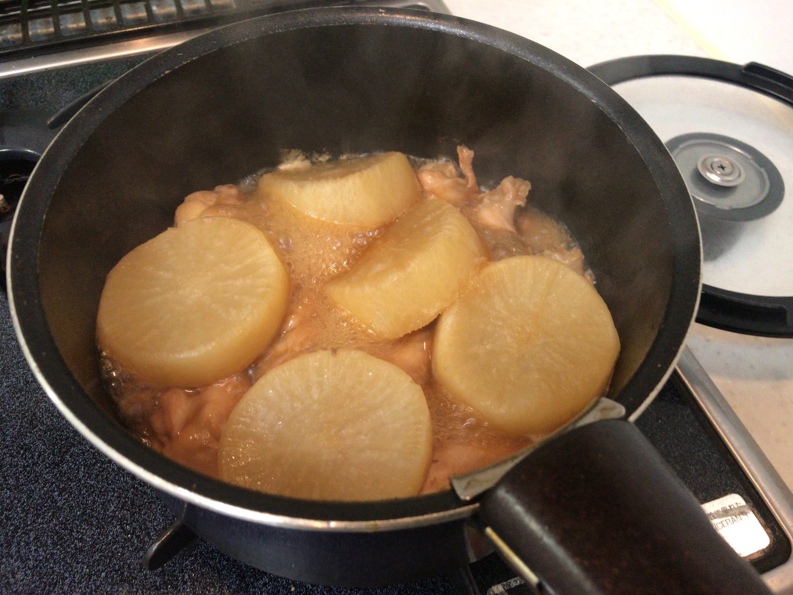 今日は先日作った「味付け玉子」の残り汁で、手羽元と大根の照り煮を作ります。